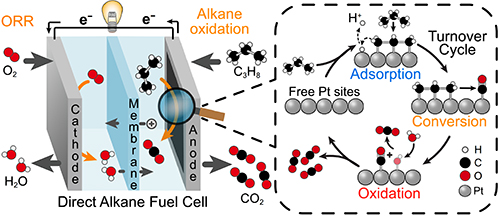 Since most existing chemical processes rely on hydrocarbons as feedstocks and energy carriers, we employ our understanding of electrochemical interfaces towards developing the science for converting hydrocarbons using electrical energy. In doing so, we open new avenues for the storage of renewable electricity and enable the electrification of the chemical industry.